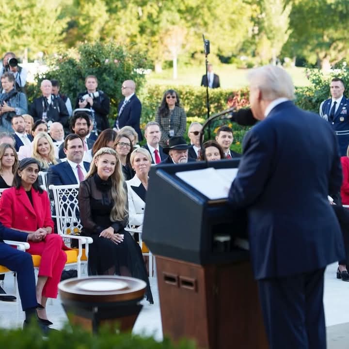 In the Rose Garden here at the @WhiteHouse, President Donald J. Trump posthumously awards Charlie Kirk the Presidential Medal of Freedom. @MrsErikaKirk @TPUSA pic.twitter.com/YfV970X58c